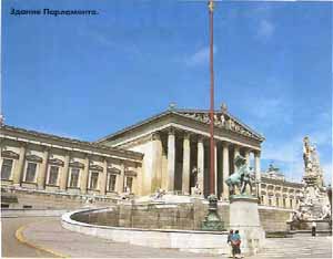 В застройке бульвара участвовало много архитекторов, старавшихся превзойти друг друга в оригинальности. В результате возник конгломерат различный стилей, когда-то раскритикованных как “стилевая мешанина”, с годами, однако, утвердившийся как собственный “ринг-штрассенстиль” - история искусств знает немало подобных примеров. На Ринге вы увидите много интересных зданий, обратим ваше внимание на самые значительные из них. Неоготический Ратхаус - Ратуша Вены - построена в 1872-83 годах Фридрихом фон Шмидтом, строителем Кёльнского собора. Его центральная башня увенчана “железным ратушным человечком”, ставшим одним из символов Вены. Перед Ратушей парк, украшенный фонтанами и скульптурами выдающихся австрийцев, среди которых Йоханн Штраус-отец и Йозеф Ланнер. С ноября площадь перед Ратушей украшает огромная ёлка, доминанта рождественского базара, где развлекаются и стар и млад. Летом площадь превращается в открытый театр, где проходят фестивали искусств, выступает цирк. Вокруг устраиваются лотки с сувенирами и разной снедью - венцы и гости столицы получают хлеб и зрелища. Парламент (1873-83) построен датчанином Теофилом Хансеном. Архитектор долгие годы провёл в Афинах, что вдохновило его на проект в греческом стиле. Перед зданием фонтан со статуей Афины Паллады.