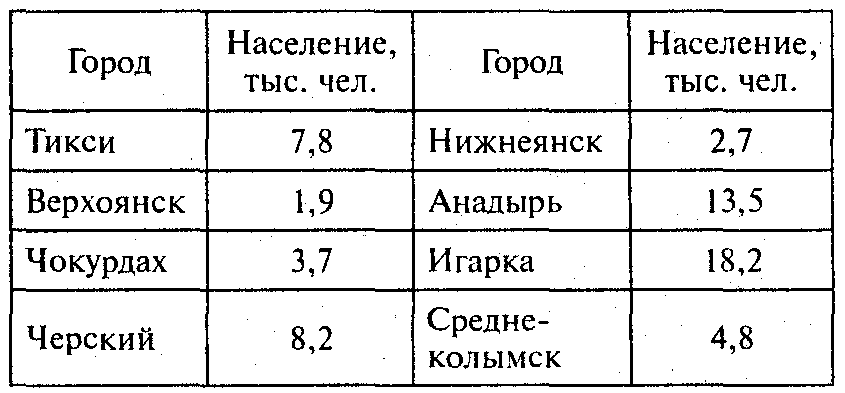 д) Численность населения в некоторых городах Севера................23