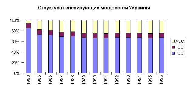 Генерирующие мощности Украины представлены тепловыми, атомными и гидроэлектростанциями.