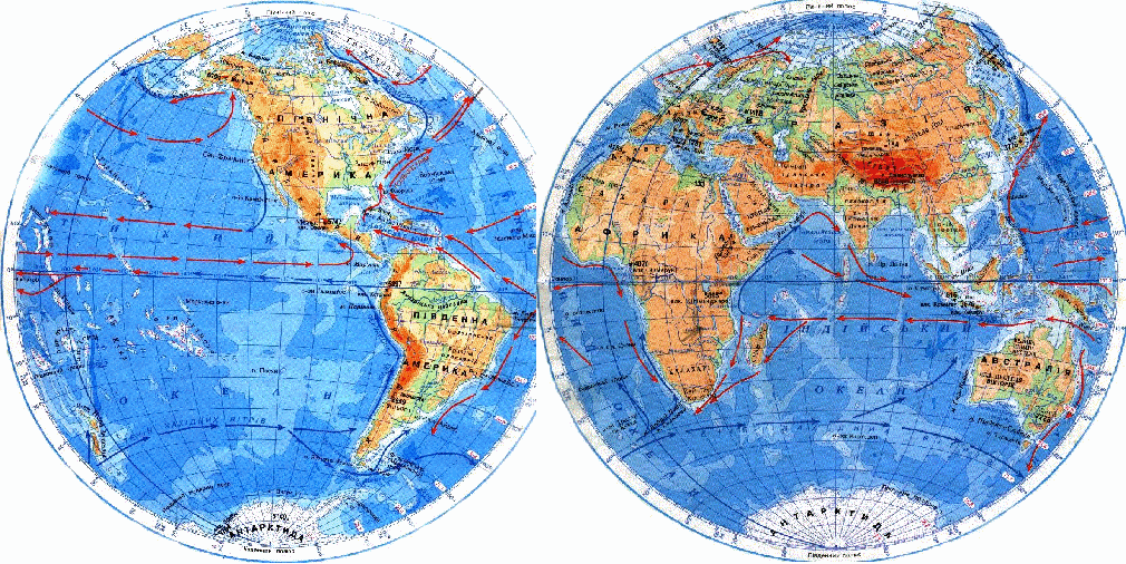 Основные поверхностные течения: в северной части Тихого океана — тёплые Куросио, Северо-Тихоокеанское и Аляскинское и холодные Калифорнийское и Курильское; в южной части — тёплые Южно-Пассатное и Восточно-Австралийское и холодные Западных Ветров и Перуанское. Температура воды на поверхности у экватора от 26 до 29°C, в приполярных областях до −0,5°C. Солёность 30–36,5‰.