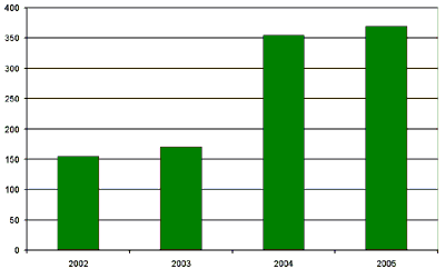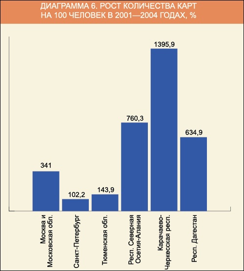 Диаграмма 6. Рост количества карт на 100 человек в 2001-2004 годах29