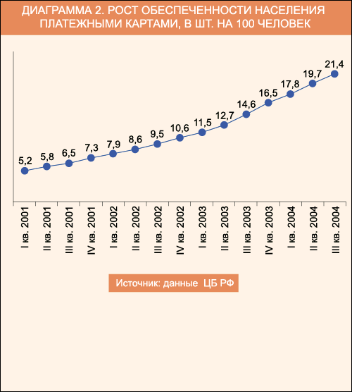 Диаграмма 2. Рост обеспеченности населения платежными картами25