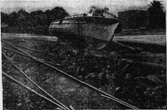 Катер, выброшенный на берег, во время цунами в 1946 года на Гавайских островах