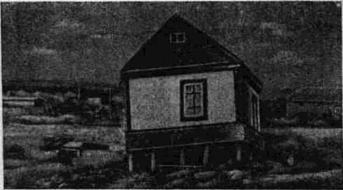 Один из домов в городе Северо-Курильске, перенесенный волной в портовую часть города во время цунами в ноябре 1952 года