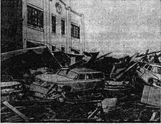 Разрушения, произведенные волнами цунами 1960 года, в городе Пуэрто-Монте