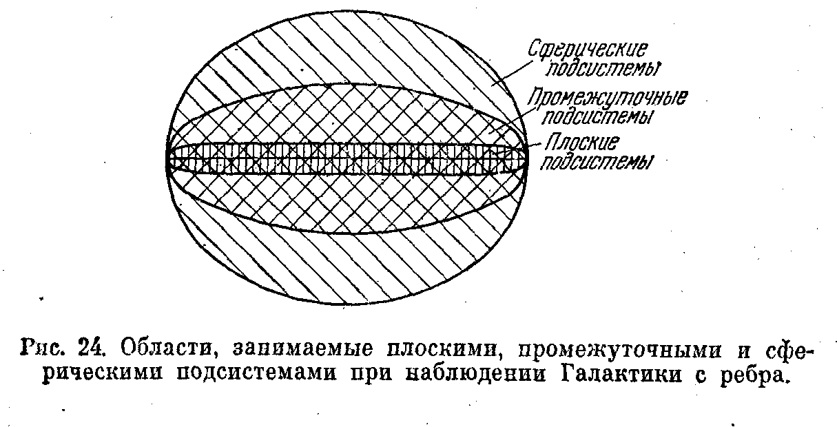 Большая часть массы Галактики находится в короне (протяженной сфероидальной области за пределами гало). Звёздный состав Нашей Галактики разнообразен по возрасту, химическом составу, характеру орбит и скоростей, пространственному расположению. В галактике отчётливо выделяются звёздные подсистемы. Диапазон возрастов звёзд очень велик. Химический состав вещества галактики менялся на протяжении её эволюции. Звёзд с первичным химическим составом (из водорода и гелия) не обнаружено. В галактике (за исключением её центра) отдельные звёзды практически не взаимодействуют друг с другом. Звёзды Галактики по-разному распределены в пространстве: старые звёзды заполняют сферический V с r20 кпк (концентрация растёт к центру); молодые (около 100 тыс. лет) концентрируются в гигантский тонкий диск толщиной, в десятки раз меньшей его радиуса. Некоторые звёзды рождаются и в настоящее время. Большинство звёзд имеет «средний» возраст – несколько млрд. лет.
