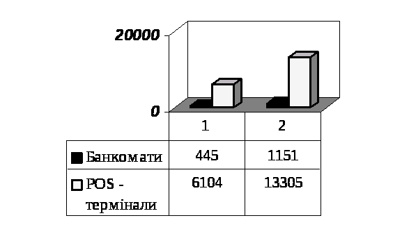 Кожен держатель пластикової картки в розвинених країнах може розплатитися майже в усіх магазинах, а якщо необхідна готівка, то він не матиме проблем і з цим, бо налічується велика кількість банкоматів (табл.1.1.).