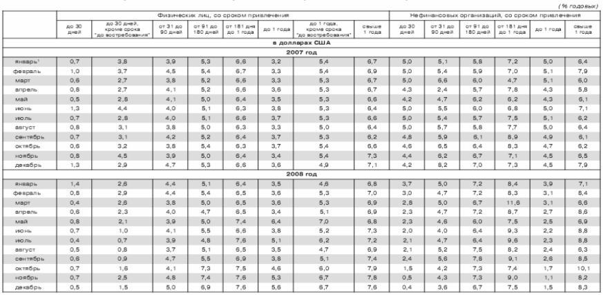 Средневзвешенные процентные ставки по привлеченным кредитными организациями вкладам (депозитам) в долларах США
