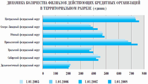 Неравномерность региональной концентрации активов кредитных организаций остается серьезной проблемой банковского сектора. Низкой остается динамика развития региональной филиальной сети кредитных организаций, что в значительной мере сдерживает экономический рост регионов. Одной из мер для решения этой проблемы было принятие закона об отмене государственной пошлины и сбора за открытие филиала кредитной организации, а также обеспечение условий для расширения норм банковского обслуживания клиентов кредитных организаций вне места нахождения кредитной организации. Очевидно, что этих мер оказалось недостаточно для полноценного решения проблемы.