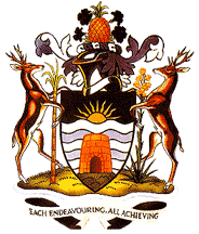 Главным образом герб обозначает сахарную промышленность, которая приносит большую часть дохода для островов. Башня - символизирует тростниково-сахарный завод. По левую сторону герба изображено растение сахарного тростника, по правую - цветок хлопка. Шлем оплетен четырьмя цветками гибискуса, на вершине шлема - ананас (третья по урожайности сельскохозяйственная культура островов). Олени - это символ острова Барбуда. Внизу герба - горизонтальная двухцветная лента, на желтой стороне которой девиз государства: "Each Endeavouring, All Achieving". (Залог всеобщего успеха в старании каждого). Герб принят 16 февраля 1967 года.