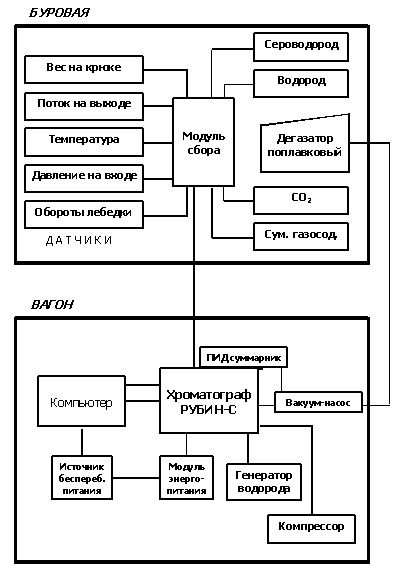 прием и оперативную обработку информации от датчиков газотехнологических параметров бурения, расположенных на буровой;