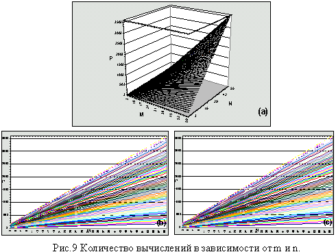 Необходимо отметить изменение количества вычислений в зависимости от n и m, то есть трудоемкость вычислительного процесса. На рис.9(a-d) представлена поверхность изменения количества вычислений. На ее основе и используя результаты исследований (рис.8) можно сделать вывод об оптимальном сочетании качества и количества вычислений для трубы. Наиболее оптимальными являются значения n=30, m=30 или около этого диапазона. Хотя, конечно, для детализации процесса по времени можно увеличивать значение m, но существенного улучшения относительной погрешности это не даст. Ее изменение составит не более 1%.