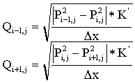 Необходимо принять во внимание, что во временном слое можно вычислить расход газа по соседним давлениям. А при перемещении по времени можно определить давление, если известно предыдущее состояние соседних по x расходов.