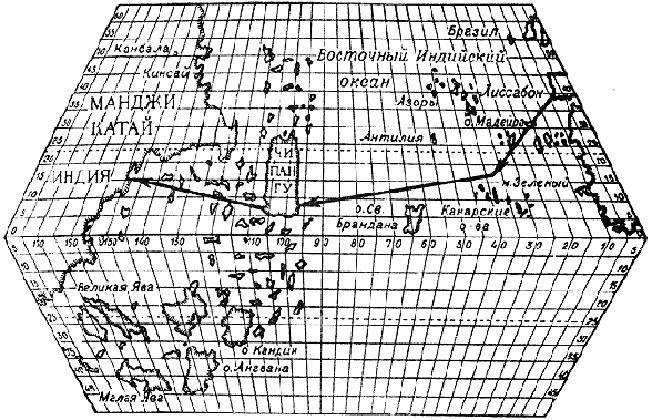 Теория Колумба основывалась на двух неверных представлениях: во-первых, что Азиатский материк простирается на восток примерно на 30° дальше, чем на самом деле, и, во-вторых, что Япония находится в 2400 км к востоку от этого материка. Колумб также неверно установил длину окружности Земли. Хотя он и разделил земной шар на 360°, оценка длины его окружности на уровне экватора оказалась заниженной. Колумб полагал, что Канарские о-ва отстоят приблизительно на 4440 км от Японии, тогда как на самом деле это расстояние равно 19 615 км. Сходные заблуждения были присущи и другим образованным людям той эпохи, включая флорентийского гуманиста и географа Паоло даль Поццо Тосканелли, с которым Колумб, возможно, переписывался.