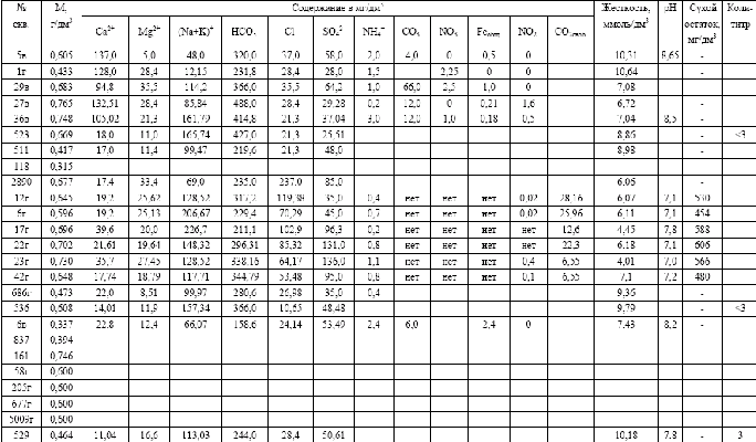 Таблица химического состава вод бат-келловейского водоносного комплекса территории Белгородской области