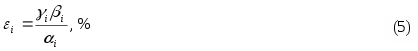 , , - содержание CSn в исходной горной массе, обогащённом и отвальном продуктах соответственно, %;