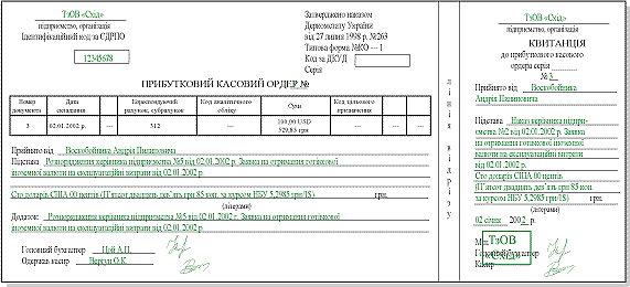 Для оприходования наличной иностранной валюты в кассу предприятия не разработан первичный документ. Поэтому предприятия вынуждены использовать бланк ПКО, разработанный для отражения операций в национальной валюте. Исходя из этого при заполнении ПКО необходимо: