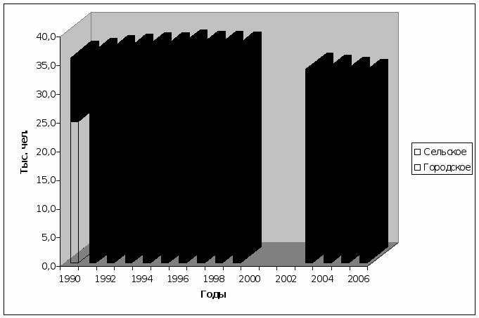 Динамика численности городского и сельского населения Осинского района в 1990-2006 гг. |