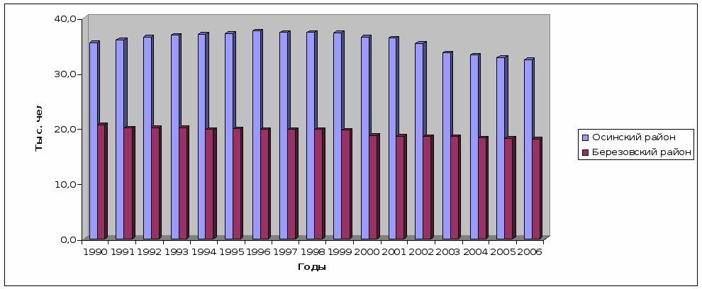 Динамика численности населения Осинского и Березовского районов в 1990-2006 гг. |
