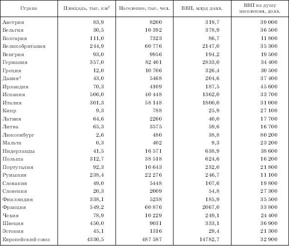 Таблица 2. НЕКОТОРЫЕ ДАННЫЕ О СТРАНАХ ЕС (2007 г.)