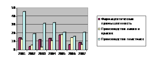 производства смешанной ориентации: производство красителей, стабилизаторов для шинной и резинотехнической промышленностей, химических средств защиты растений, мономеров для пластмасс и синтетических смол (в основном, производства, изготовление продукции которых связано с сложным технологическим циклом и использованием большого количества реактивов в процессе производства).