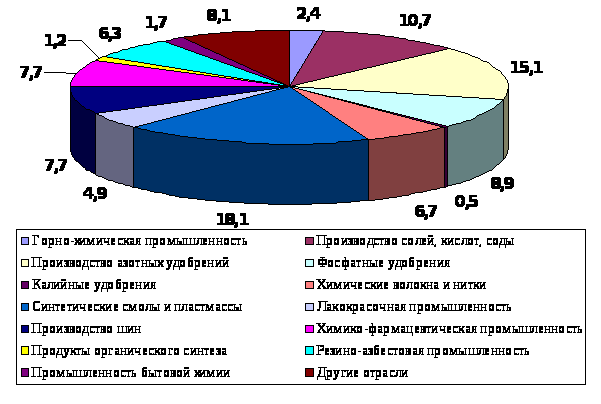 производства, которые ориентируются на потребителя. В основном это производства основной химии, кроме калийных удобрений и кислот, а также производства шин, изделия из пластмасс, стеклопластиков, товары бытовой химии;