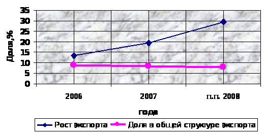 Согласно рисунку 3.2, рост экспорта в 2007 г. был равен порядка 19,5%, что на 6,1 пунктов выше, чем в 2006 г.