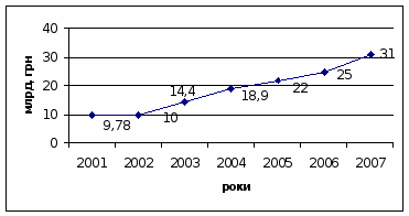 Малюнок 2. – Динаміка реалізованої продукції хімічної промисловості в 2001-2007 рр
