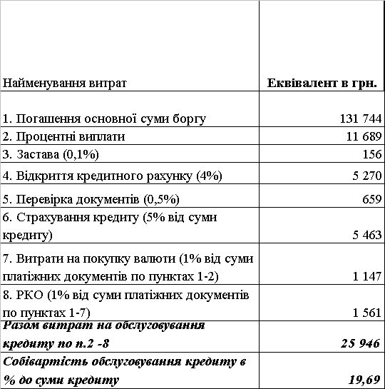 Розрахункова собівартість комбінованого кредиту становить – 19,69%.