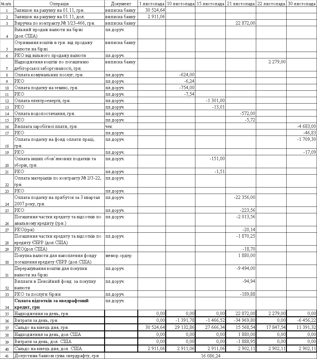 складені звіти про обороти підприємства за поточним рахунком з урахуванням отриманих кредитів, порядку проведення розрахунків в іноземній та національній валюті;