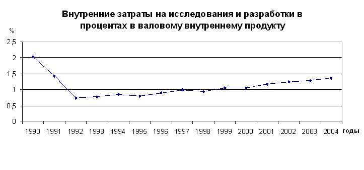 При этом деградация научного потенциала страны продолжается, о чем свидетельствует снижение стоимости основных средств исследований и разработок, и ухудшение их результативности. По сравнению с 1997г. число созданных в 2003г. новых производственных технологий, в России, сократилось в 1,4 раза, а производство принципиально новых по мировым стандартам технологий – в 1,6 раза.