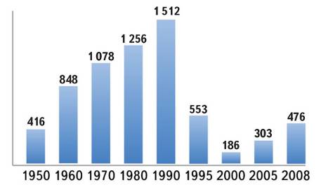 В период 1990–2000-е гг. резко снизились объемы строительства. По показателю вводимого жилья на душу населения Иркутская область оказалась на последних местах среди субъектов СФО. При этом росла площадь аварийного и ветхого жилья.