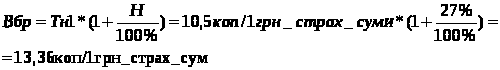 Розрахувати брутто-ставку Вбр, якщо відомий розмір нетто-ставки Т>н1> = 10,5 коп./ на 1 грн. страхової суми і питома вага навантаження Н = 27% від нетто-ставки.