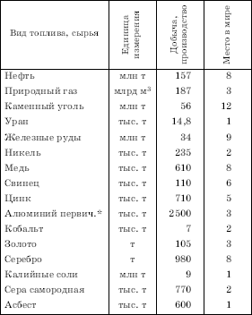 Понятно, что естественной основой для такого мощного развития этой отрасли послужило исключительное природное богатство Канады полезными ископаемыми. Достаточно сказать, что в ее недрах сосредоточено более 4/>5 >всех запасов калийных солей стран Запада, около 2/>3> запасов никеля и цинка, 2/>5> запасов свинца и урана, около 1/>3> запасов железной и медной руды, титана, вольфрама. К этому перечню можно добавить довольно большие запасы нефти и природного газа, каменного угля, кобальта, платины, золота, серебра, асбеста и некоторых других полезных ископаемых.