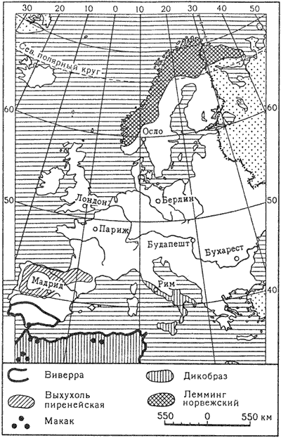 Рис. 21. Распространение некоторых животных в зарубежной Европе