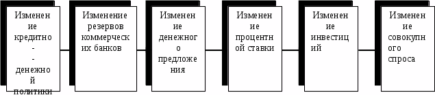 Между изменением предложения денег и реакцией совокупного спроса расположены еще две промежуточных ступени, прохождение через которые существенно влияет на конечный результат.