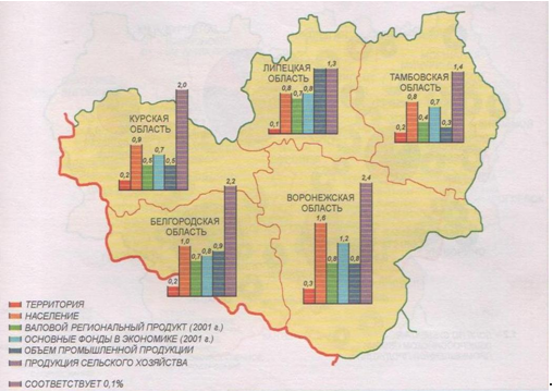 Состав Центрально-Черноземного экономического района: Белгородская, Воронежская, Курская, Липецкая и Тамбовская области.