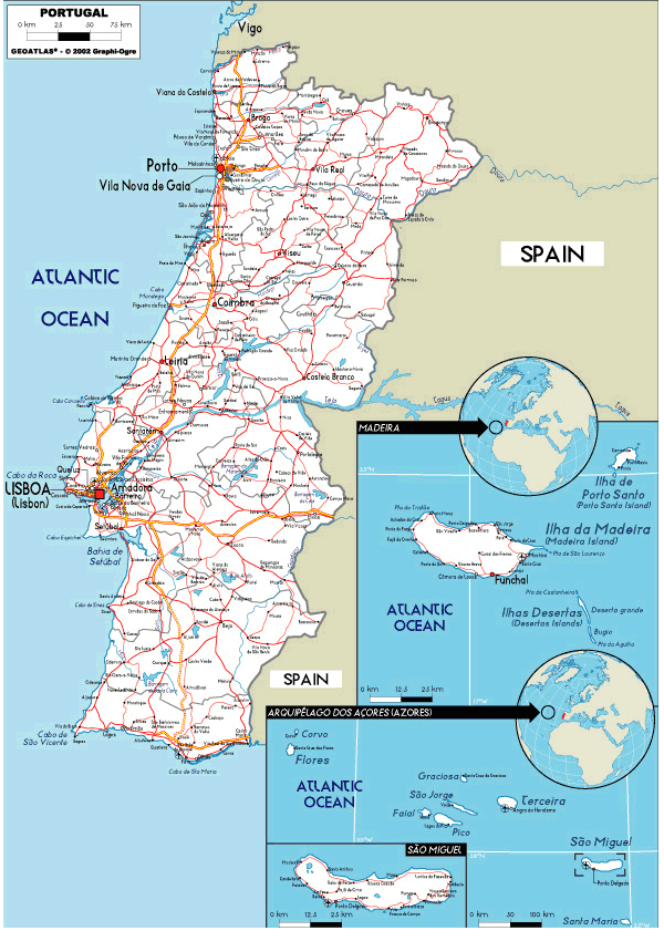 Столица Португалии – Лиссабон. Полуостровная часть Португалии разделена на 18 округов – основных административно-территориальных единиц; 4 округа составляют острова, пользующиеся в ряде вопросов внутренней автономией. Сохраняется традиционные деление страны на исторические провинции.