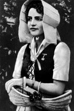 Уже с середины XIX века перестали во Франции носить красочный народный костюм. Женский народный костюм состоял из широкой юбки со сборками, кофты с рукавами, корсажа, передника, чепца или шляпы. (рис.1) Мужской костюм - штаны, гетры, рубаха, жилет, куртка (или широкая, доходящая до середины бедра блуза), шейный платок и шляпа. Будничный головной убор крестьянина и рабочего - берет, который носят и в наше время. Старинная народная обувь - сабо - выдолбленные из дерева башмаки. (рис.2) Основные элементы костюма были одинаковыми во всей Франции. Отличие костюмов от провинции к провинции создавалось красочной вышивкой, различной, порой причудливой формой чепцов, разным покроем и украшением корсажа и передника, разнообразием тканей.