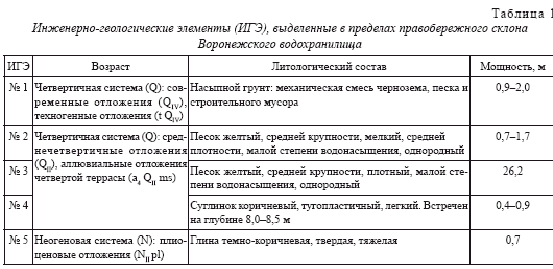 Инженерно-геологические условия правобережного склона Воронежского водохранилища