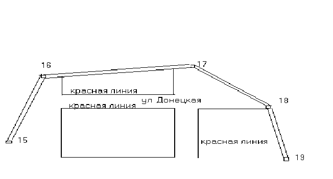 Построение прямого угла в стесненных условиях выполняют с использованием свойств «египетского» треугольника с отношением сторон 3:4:5 . Для этого от вершины Д (рис.1 в) по линии ДС откладывают отрезок кратный 4, например 8 м. Затем прикладывают нулевой штрих рулетки к точке Д и закрепляют его, а штрих, кратный сумме 3+5=8, в нашем случае 16 м, прикладывают и удерживают у точки С. После этого натягивают рулетку за штрих кратный 3, т.е. за штрих 6 м, и в месте прогиба отмечают точку А. при этом линия АД будет перпендикулярна линии ДС.