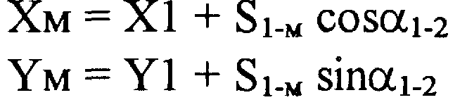 1.2 Для сохранения угла при точке 23 равным 180°, вычислить координаты точек M>1>, по дирекционному углу >22-23> к горизонтальному проложению S>23->>M>>1>, взятому с плана (приложение А):