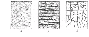 а- слитная(массивная); б-слоистая; в-ячеистая.