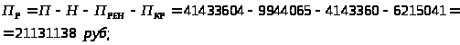 П>РЕН> – фиксированные платежи, 10 % от прибыли, П>РЕН> =4143360рублей;