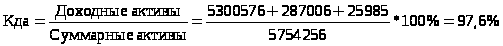 Уровень доходных активов (Кда) показывает, какую долю в активах занимают доходные активы. Так как практически все доходные активы являются рискованными, их высокая доля увеличивает неустойчивость банка и риски неплатежей как по текущим операциям, так и по своим обязательствам. Вместе с тем, размер доходных активов должен быть достаточен для безубыточной работы банка. Нормальным считается, если доля доходных активов составляет 65-70%, либо ниже, но при условии, что доходы превышают расходы.