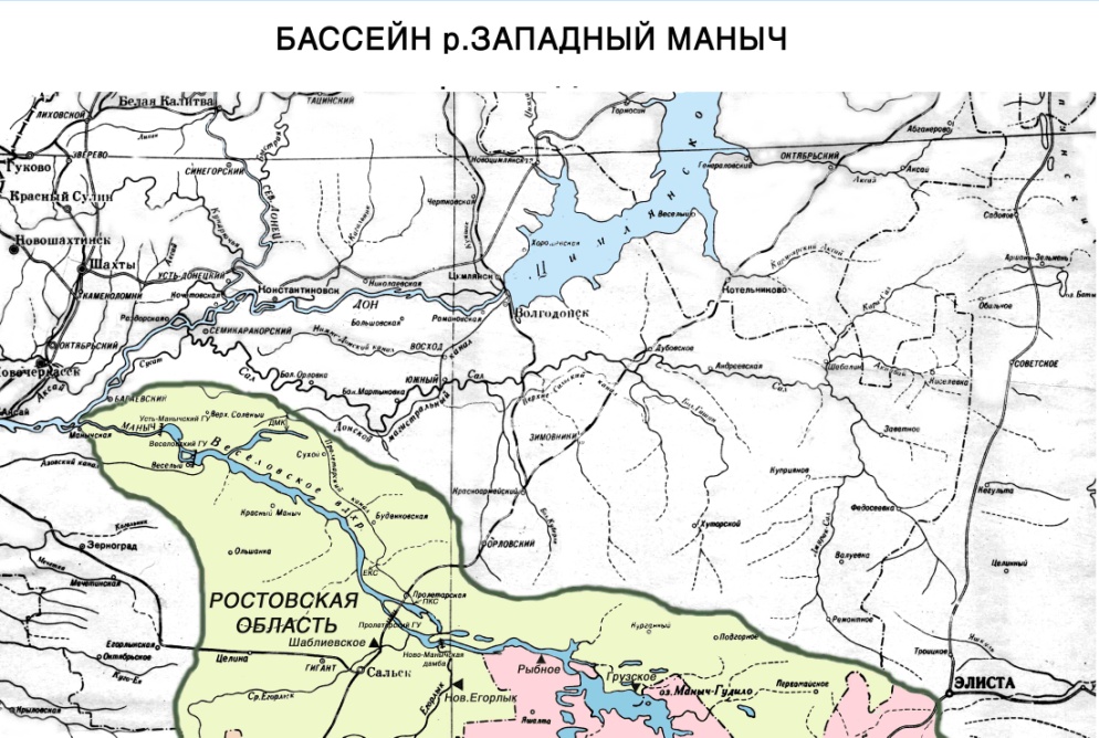 Северо-западная часть Кумо-Манычской впадины и протекающая по ней р. Западный Маныч являются замыкающим звеном огромной водохозяйственной системы (ВХС), которая при помощи комплекса взаимосвязанных водных объектов и гидротехнических сооружений обеспечивает перераспределение водных ресурсов по территориям четырех субъектов Российской Федерации в Южном федеральном округе (Ростовская область, Ставропольский и Краснодарский края, республика Калмыкия) (рис.1).