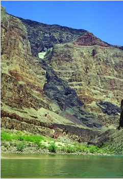 В глубине восточной части Большого Каньона, расположенного в Аризоне, находятся расположенные в ряд “древние” базальтовые лавовые потоки, известные геологам, как слой Базальт Карденас (Рисунок 1 и 2). Когда-то это была расплавленная лава, которая последовательно извергалась на земную поверхность через кратеры и трещины вулканов и растеклась по уже отложенным пластам алевритов. Эти пласты быстро затвердели и стали плотной горной породой черного цвета, которая называется базальтом (Рисунок 3). Позже эта порода покрылась толстыми слоями осадочной породы. Расположение потоков лавы Базальта Карденас во всей последовательности слоев горных пород в Большом Каньоне можно рассмотреть в общей геологической “блоковой" схеме строения Большого Каньона (Рисунок 4). В этой статье исследуется ошибочность предположений, используемых большинством светских геологов, которые применяют униформистскую систему взглядов (медленные и постепенные геологические процессы) при “датировании” горных пород Большого Каньона.