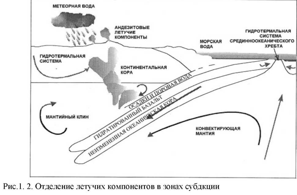 Гидротермы представлены, преимущественно, метеорной водой, хотя приток нескольких процентов магматической воды и связанных с ней летучих компонентов, могут играть важную химическую роль в рудообразовании. Особенно в порфировых средах (рис.1.2).
