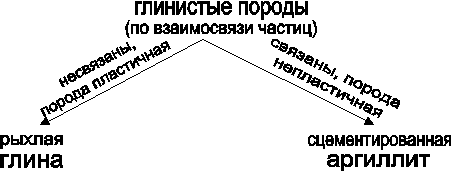 Сообщаю правило, по которому алгоритмический процесс определения глинистых пород признается завершенным. Глинистая рыхлая порода называется глина, сцементированная – аргиллит.