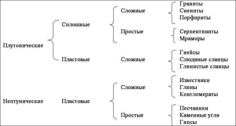 В книге “Естественная история земной коры”, изданной в 1858 г. профессор С.-Петербургского университета, директор минералогического общества России С. Куторги все горные породы разделил по происхождению на две группы: плутонические и нептунические.